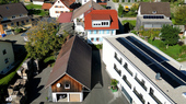 - Das Wohnhaus mit den blauen Fensterläden wurde 1912 gebaut.