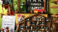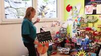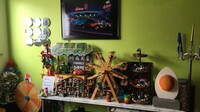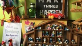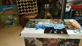 Hier im Hobbyraum lagern viele von Violettas Schlümpfen. In Kartons und Wägen verstaut, oder in Regalen und auf dem hölzernen Riesenrad platziert.