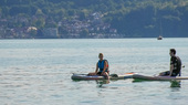 Der Preis für den Verleih von SUP-Boards variiert am See zwischen zehn und 20 Euro pro Brett und Stunde.