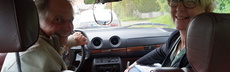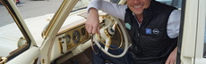 Reinhard fährt oft mit historischen Autos. Auch bei der diesjährigen Bodensee Klassik ist er der Fahrer des Teams. Den superlangen Mercedes mit 88 PS lenkt er gekonnt (und durchaus rasant) über Serpentinen und durch kleine Gassen.