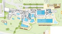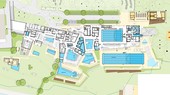 Das Familien- und Sportbad enthält ein 25-Meter-Becken mit fünf Bahnen sowie eine Sprunganlage mit Ein-Meter-Brett und Drei-Meter-Turm.