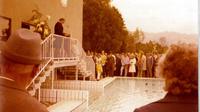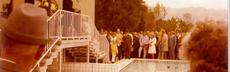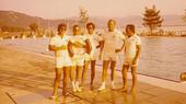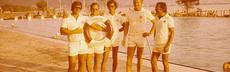 Bis 1976 herrschte im Eichwald Badekappenpflicht. Darüber, und über die Gäste im Eichwald wachten die Bademeister, die hier im Bild stolz posieren (von links): Klaus-Dieter Massek, Bruno Hafner, Rainer Schwarz, Helmut Lay und Albert Widmann.