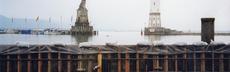 Um den Hafen dicht zu machen, errichten die Anwohner meterhohe Schutzwände.
