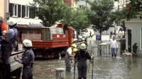 In der Nacht zum Pfingstsonntag regnet es weiter. Hilfskräfte sichern nun ganze Häuserzeilen, Taucher setzen Luftkissen in die Kanalisation ein, damit dass Wasser nicht weiter in die Keller drückt.