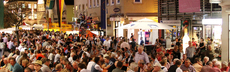 So wie auf dem Bild wird es aber nicht aussehen. Tausende Menschen drängen sich am Freitag- und Samstagabend durch die Gasse. Stühle und Tische müssen für Getränkestände weichen.