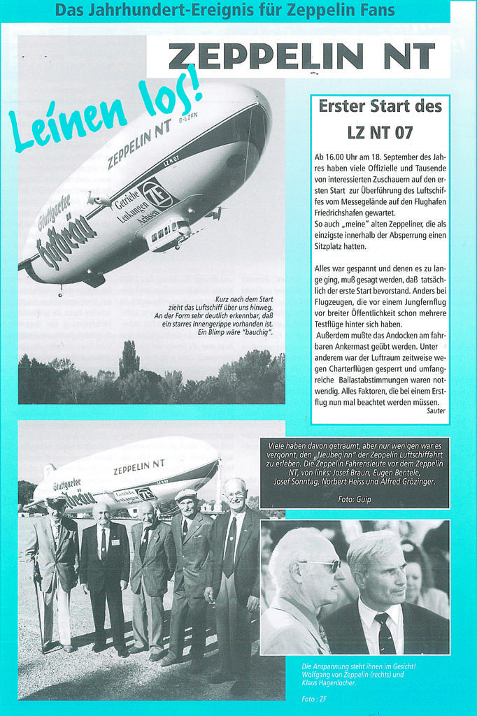 „Es war kein Sommertag wie jeder andere. Es war schon ein besonderer Tag, dieser 18. September 1997. An diesem Tag sollte der Zeppelin Neuer Technologie erstmals in Friedrichshafen abheben, wie seine Vorgänger fast hundert Jahren zuvor.