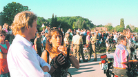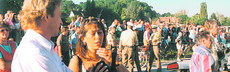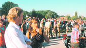 Sie waren mit Fahrrädern, Mopeds oder mit Kinderwagen vor Ort. Die Autos mussten auf abgesperrten Parkplätzen abgestellt werden. Väter hatten ihre Kinder auf den Schultern sitzen, Polizisten mischten sich zur Sicherheit unter das wartende Volk. Es lag eine unheimliche Spannung in der Luft."