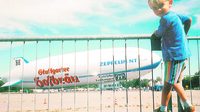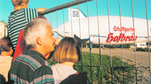 Alle anderen warteten gespannt hinter den Gittern, bis der Zeppelin dem Himmel empor steigt.