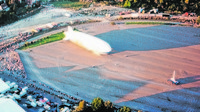 Vor etwa 30.000 Zuschauern stieg der Zeppelin NT schließlich in die Höhe und landete anschließend vor der neuen Luftschiffhalle.