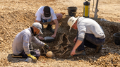 Die Grabungstechniker nutzen beispielsweise Industriestaubsauger, um die Skelette zu reinigen.