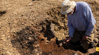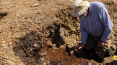 Grabungstechniker tragen zunächst die groben Steine ab, kratzen Erde von den Knochen und befreien sie dann mit Pinseln von Dreck und Staub.