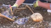Ein zweiter Schädel ist zertrümmert worden - das kann nach Angaben der Anthropologen vom Landesdenkmalamt jedoch auch beim späteren Wiederöffnen des Grabes geschehen sein.