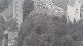 Damals wurde der Boden abgetragen, um dem Neubau einer Realschule mehr Licht und Luft zu spendieren. Als man merkte, das der Turm nur noch zwei Meter tief verankert war, ließ man von dem Vorhaben ab. Der Turm war früher also optisch etwas kleiner.