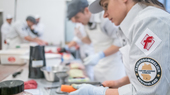 entsprechend – für die feineren Arbeiten zuständig. Für das Garnieren, das
