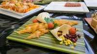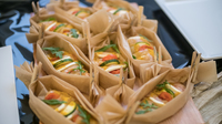 bestückt sie nach und nach die Platten mit den fertigen Spezialitäten: