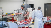 dann: Die sechs Fleisch-Hochleistungssportler müssen ein halbes Rind, ein