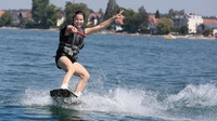 Marvin Weber testet das E-Board "Waterwolf" von Markus Schilcher aus Bayern.