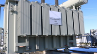 Die Hauptarbeit im Umspannwerk machen die Transformatoren. Diese Umspanner verbinden die verschiedenen Spannungsebenen. Der Transformator besteht aus Spulen, Kupferdraht und einem Kern: Die vielfach gewickelten Drähte erinnern ein bisschen an Nähgarn. Der Strom fließt mit 110 Kilovolt Spannung in den Transformator hinein, raus kommen noch 20 Kilovolt.