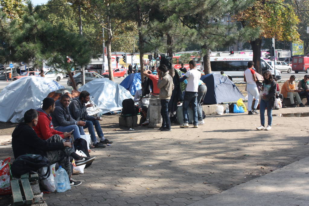 Viel Hilfe Rund 200 Menschen schlafen in den Belgrader Parks täglich, mal sind es mehr, mal sind es weniger. Dazwischen gibt es einen Infostand der UN-Flüchtlingsorganisation UNHCR und einen Erste-Hilfe-Container. Viele internationale Organisationen wie Save the children, das International Aid Network, SOS Remar und das Deutsche Rote Kreuz sind vor Ort. Es gibt eine Feldküche.