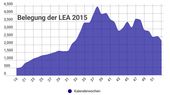 Immer wieder protestierten Stadt und Landkreis gegen die Überbelegung, immer wieder wird versucht, durch Verlegungen und neue LEAs die Situation zu entspannen. Vergeblich. Der absolute Rekord wird am 23. September 2015 erreicht. An diesem Tag leben 4659 Männer, Frauen und Kinder in der LEA, die teils Stunden fürs Essen anstehen mussten, weil der Betrieb für so viele Menschen einfach nicht ausgelegt ist.