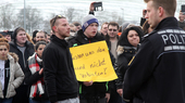 Die Menge skandierte „Merkel muss weg“ und „Schützt unsere Kinder“. Anlass für die nicht angemeldete Demonstration waren offenbar die gewalttätigen Übergriffe auf Frauen in der Silvesternacht in Köln und anderen deutschen Großstädten. Der Aufruf zu dem Protest war zuvor via Facebook veröffentlicht worden.