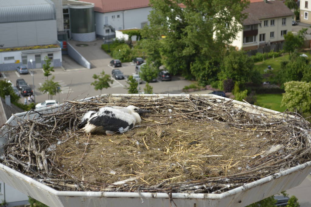 Auch seine ersten Flugversuche brachten nicht viel Hoffnung: Im Juli flog er gleich zweimal gegen eine Mauer und wollte danach das Nest nicht mehr verlassen. Doch der Jungstorch hat alle Probleme gemeistert und ist im August Richtung Süden gezogen.
