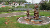 Zunächst haben sie zwei Jahre lang in Cervia (Provinz Ravenna) den dortigen Ostalbkreisel zusammen mit anderen Figuren geschmückt und ihre Heimatgemeinde Hüttlingen repräsentiert. Danach durften die drei zur Gmünder Landesgartenschau.