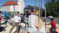 Eine Fachfirma fertigte zwei exakte Kopien der Dachspitzen an,die Tannhäuser Künstlerin Birgit Kohl hauchte den Ritterfiguren mit Farben Leben ein.