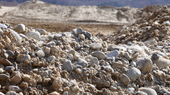 Dort schütten sie den Rohkies in einen in einen großen Trichter. Alles, was dicker als 15 Zentimeter ist, wird aussortiert. Der Rest läuft über Fließbänder in die Aufbereitungsanlagen. Alle Steine mit bis zu 32 Millimetern Durchmesser werden als Betonkiese verarbeitet. Die dickeren Steine werden in mehreren Brechvorgängen zu Schotter oder Splitt gebrochen.