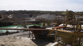 Zum Waschen des Kieses wird Wasser aus einem See gepumpt. 520.000 Liter Wasser pro Stunde zirkulieren im Kieswerk jeden Tag. Zurück bleibt der Schlamm, der in einen höher gelegenen See geführt wird. Aus diesem fließt das Wasser wieder zurück in den anderen See. Auf diese Weise versorgt sich das Werk aus einem geschlossenen Kreislauf selbst mit Wasser.