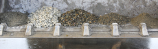 Gewaschen und sortiert werden 190 Tonnen Kies in der Stunde. Die fertigen Körnungen werden auf 16 Silos verteilt. Dazu werden 140 Tonnen Edelsplitte pro Stunde in zehn weitere Silos geschüttet.