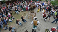 Aber auch fürs Auge und die Ohren bleiben für Mittelalterfreunde keine Wünsche offen: Neben Fanfarenklängen zur Unterhaltung treten auch akrobatische Gaukler und Tänzer auf. Natürlich darf als Zeitvertreib auch das Wagenradziehen nicht fehlen.