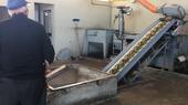 Dort schaufelt sie der Chef persönlich auf das Förderband, das zur Presse führt.
