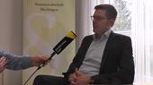 Bingens Bürgermeister Jochen Fetzer vertritt die Gemeinde und stellt sich vor die Kamera.