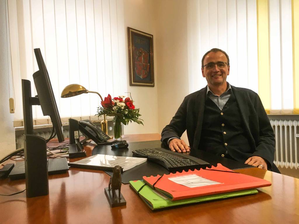 Zwar sitzt das Weingartener Stadtoberhaupt nun nicht mehr im Rathaus, da dies nicht barrierefrei ist. Allerdings wird das Amtshaus, wo Ewald mit seinem Vorzimmer aktuell noch interimsweise im Erdgeschoss untergebracht ist, aktuell umgebaut. Im neuen Jahr soll der OB dann sein neues Büro im ersten Obergeschoss beziehen.