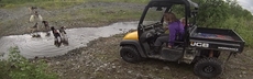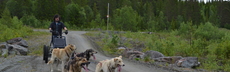 STATION 1Und die Huskys schreien: „Nimm mich, nimm mich!“Husky-Schlitten mit Kufen kennt jeder, aber in Norwegen gibt es auch im Sommer Husky-Touren