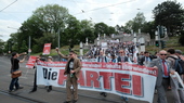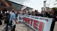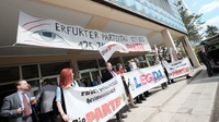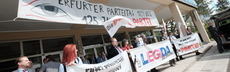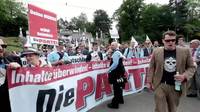Fast alle tragen eine Armbinde, auf der in roten Lettern steht: „Die PARTEI“. Sie lassen Bier in sich fließen und grölen: „Nie, nie, nie wieder Erfurt“, und die Gesichter der am Straßenrand stehenden Passanten fragen: „Was wollen die eigentlich?“