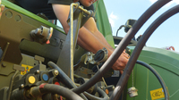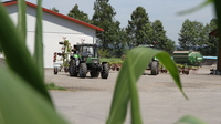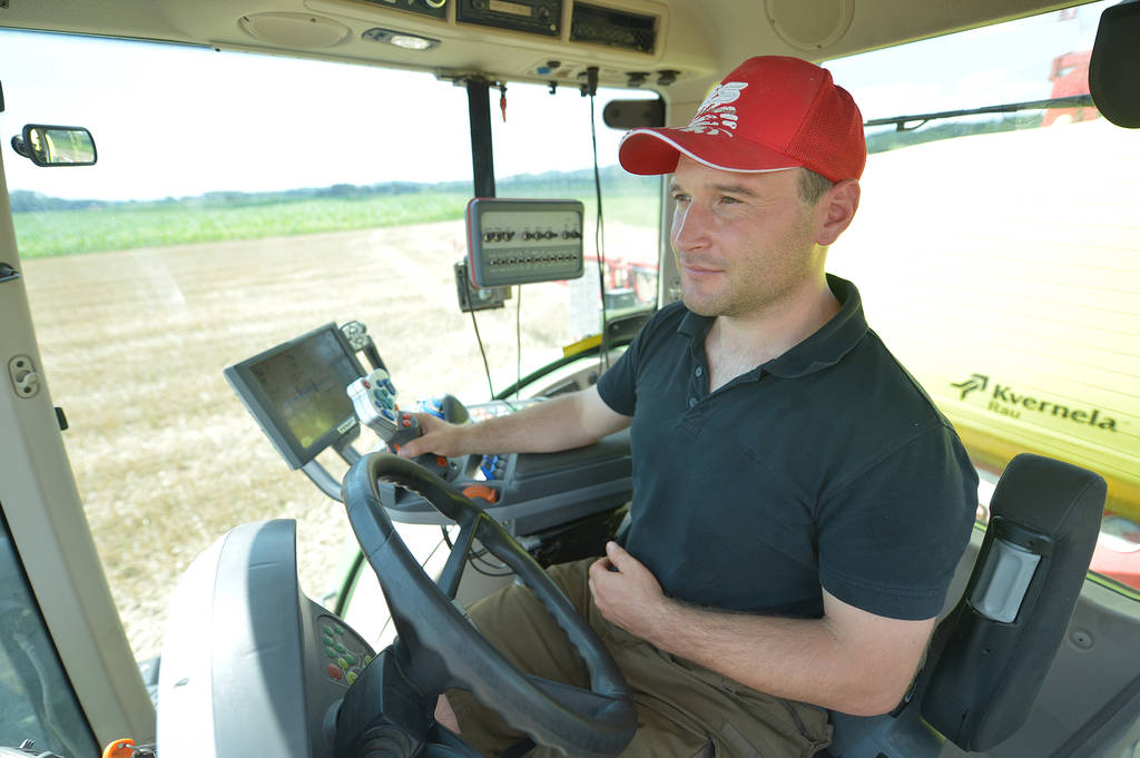 Das zeigt eine Modellrechnung der Bayerischen Landesanstalt für Landwirtschaft. Der Einsatz digitaler Karten, die Müller im Bordcomputer gespeichert hat, reduziert den Einsatz von Pflanzenschutz um zehn Prozent.Müller zählt noch andere Vorteile auf: „Der Acker wird geschont, weil der Trakor immer in den gleichen Spuren fährt“. Bedeutet: es wird weniger Ackerfläche verdichtet. „Außerdem kann ich auch nachts fahren“, ergänzt er. Das ist hin und wieder notwendig, weil manche Spritzmittel nicht in der Mittagshitze auf dem Feld verteilt werden dürfen: „Das würde die Pflanzen zu sehr strapazieren.“ Außerdem muss der Landwirt die wenigen schönen Tage in diesem Sommer voll nutzen. Dann sitzt er auch mal 14 Stunden auf dem Schlepper. An so einem Tag schafft er 60 Hektar, ein Drittel seiner gesamten Fläche: „Das ist fast wie mit der Fernbedienung vor dem Fernseher: Man sitzt bequem und drückt auf den Knopf“, sagt Müller und strahlt.