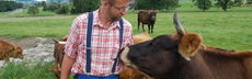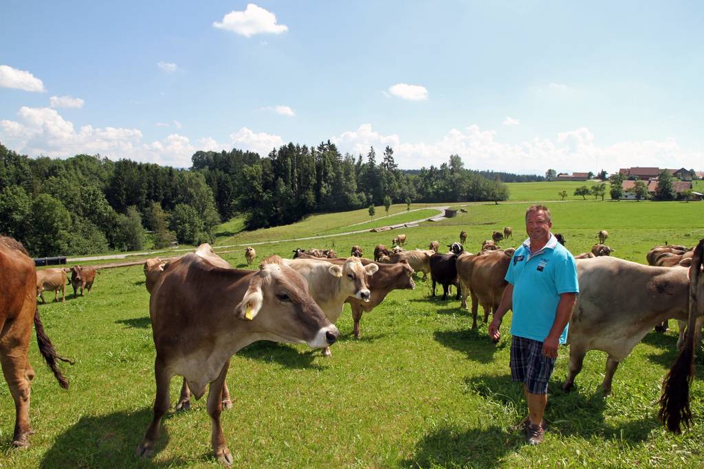 Bis vor drei Jahren war Georg Mayr ein Milchbauer. Einer, der bei jedem Protestzug für höhere Erzeugerpreise dabei war, in Berlin und in Brüssel. „Eine Katastrophe“ sei der Verfall des Milchpreises, sagt er. Irgendwann hat es ihm gereicht. Mayr suchte sich ein anderes Geschäftsfeld. Und sattelte um von der Milch- auf die Fleischproduktion, für regionale Abnehmer in der Gastronomie. Seine Nische fand er mit den Murnau-Werdenfelsern. „Die sind nicht so schwer, eine niedrigere Rasse“, sagt Mayr. „Die Fleischleistung ist 15 Prozent niedriger als beim Fleckvieh.“ Trotzdem lohnt sich das Geschäft, weil das Fleisch hochpreisiger ist. Der Trend, dass ein Teil der Konsumenten für regionale Lebensmittel aus ökologischer Produktion bereit sind, mehr Geld auf den Tisch zu legen, ist die Grundlage für Mayrs Geschäft – und wohl auch für das Überleben des Murnau-Werdenfelser Rindes an sich.