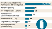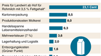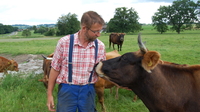 Seit Ende 2007 ist Bodenmiller überzeugter Biomilchbauer. Zwischen neun Uhr und 17 Uhr grasen seine Kühe auf den Weiden mit Bergpanorama. Der Biobetrieb ist um einiges aufwendiger als die konventionelle Milchproduktion, meint er. Besonders das Weiden der Tiere sei ein enormer Mehraufwand. Für die zusätzlichen Richtlinien, die mit dem Ökobetrieb einhergehen, erhält Bodenmiller mehr als doppelt so viel Milchgeld als seine konventionellen Kollegen – momentan rund 49 Cent für ein Kilogramm Biomilch. Für einige krisengebeutelte Milchbauern ist diese Differenz ein Grund, auch auf Bio umzustellen oder zumindest darüber nachzudenken. Doch ist das Ökobauer-Dasein nicht für alle der Weg aus der Krise. Einige Biomolkereien nehmen bereits keine neuen Zulieferer mehr auf.