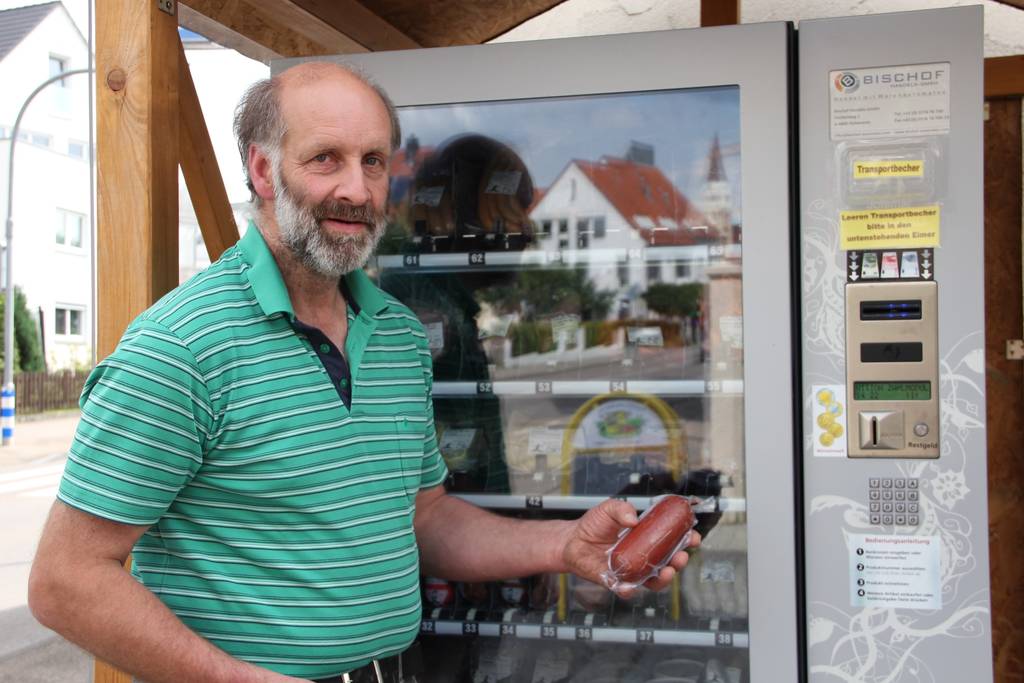 Vor 26 Jahren hat Gölz damit angefangen, sein Fleisch selbst zu verkaufen und zu vermarkten. Seitdem können Kunden Fleisch und Wurst direkt auf dem Hof kaufen. Mittlerweile hat der Laden nur noch einmal in der Woche geöffnet. An den restlichen Tagen können die Kunden sich Fleisch an einem Automaten auf dem Hof ziehen. Fünf Jahre nach Start des Hofladens entschied sich Gölz dazu, das Fleisch auch auf Märkten in der Region zu verkaufen. Der direkte Kontakt zu den Kunden ist ihm wichtig. „Die Leute wollen wissen, wo das Fleisch herkommt“, sagt Gölz. Für ihn hat es sich ausgezahlt, seinen Betrieb zu verkleinern und ihn neu aufzustellen. „Das Konzept hat sich bewährt, der Umsatz geht kontinuierlich nach oben“, sagt er.