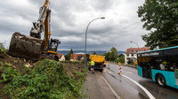Im Frühjahr und Sommer bauten die Arbeiter dann die neue Straße und hoben die große Baugrube aus, in der die 3500 Tonnen schwere Unterführung entstand. Außerdem setzten sie die Strommasten für die Elektrifizierung der Strecke. In dieser Zeit trieben Diebe ihr Unwesen auf der Baustelle: Sie klauten Stromkabel im Wert von 4000 Euro und versuchten, Baucontainer aufzuhebeln – was ihnen zum Glück nicht gelang.