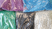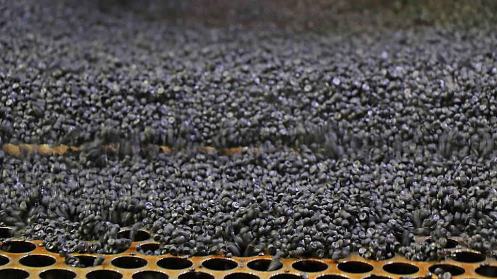 Der Gelbe Sack findet vorerst ein Ende als eingefärbtes Kunststoffgranulat, das wieder in die verschiedenen Kunststoffsorten getrennt wurde.