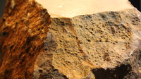Erkennbar ist auf den Abbildungen, dass Meteorit ‚Blaubeuren‘ zahlreiche auskristallisierte Schmelztröpfchen mit runden Umrissen enthält, die sogenannten Chondren.
